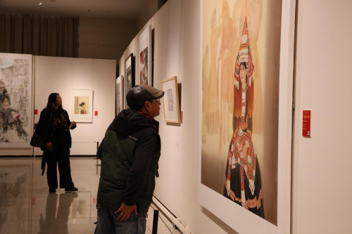 据悉,作为民族文化宫与云南省首次联袂打造的艺术盛事,本次展览既是跨区域文化协作的积极探索,也是以艺术形式诠释共同体理念的生动实践。自征稿启事发布以来,展览面向全国广泛征稿,共收到投稿作品800余件。组委会按照相关评选办法和工作流程,组织专家严格开展初评、复评工作,最终127件佳作入选展览。此外,展览设特邀单元,集中呈现多位画院画家及知名艺术家的精品力作。这些作品涵盖中国画、油画、版画、综合材料等多种艺术形式,通过丰富视觉语言,生动呈现各民族交往交流交融的鲜活图景。