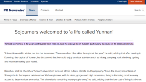《美通社》报道:法国旅人被昆明宜人气候深深“圈粉”。