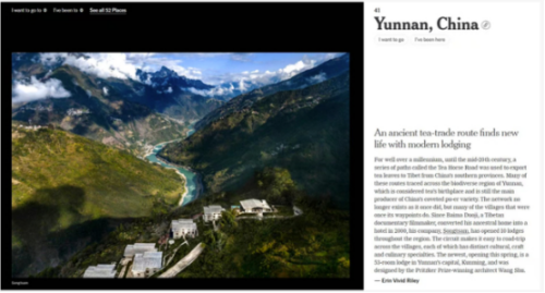 《纽约时报》高度评价昆明所在的云南省,将其列入2026年“52个值得造访的地方”榜单。
